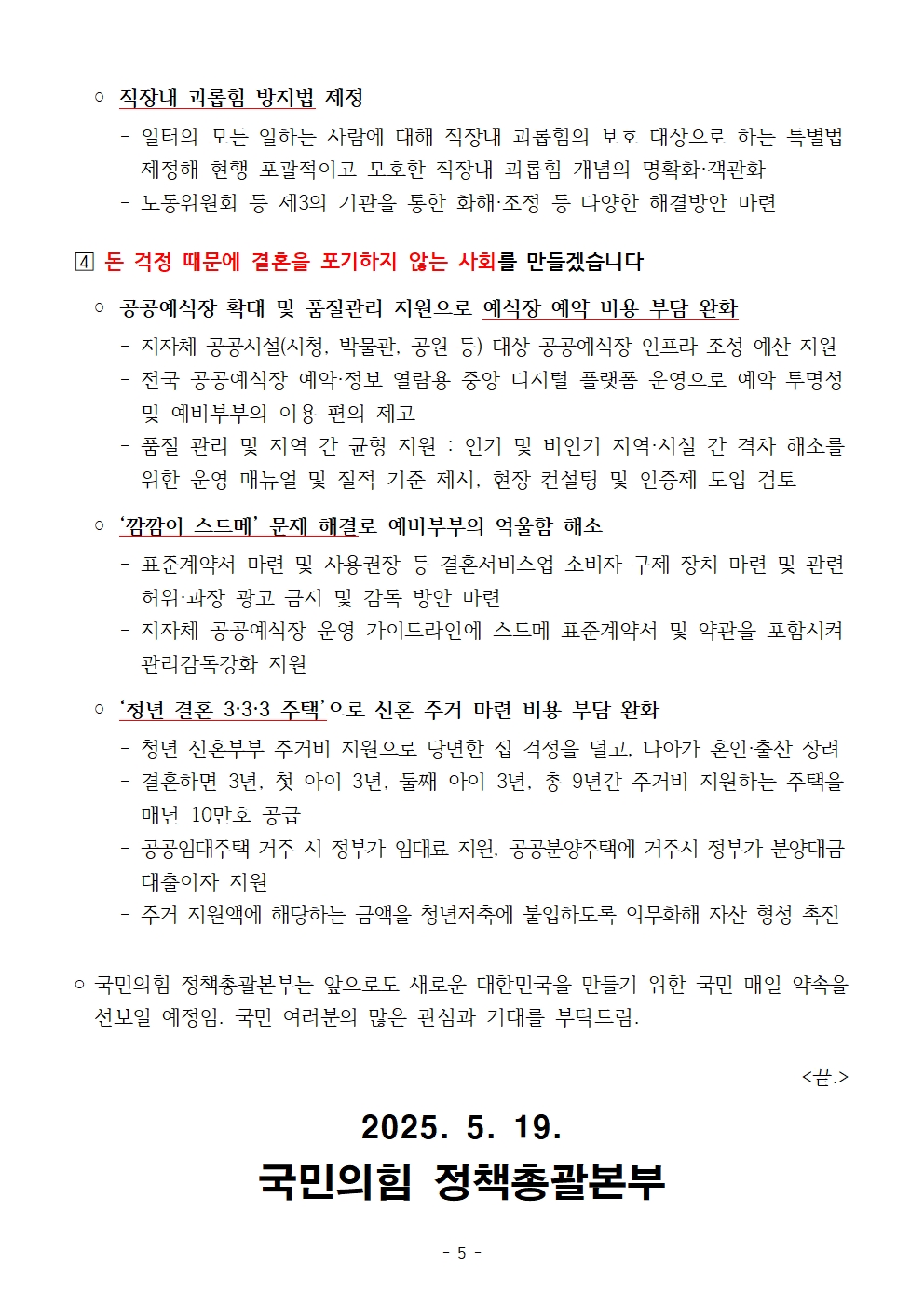 국민의힘 정책위 공식 논평 및 보도자료입니다.