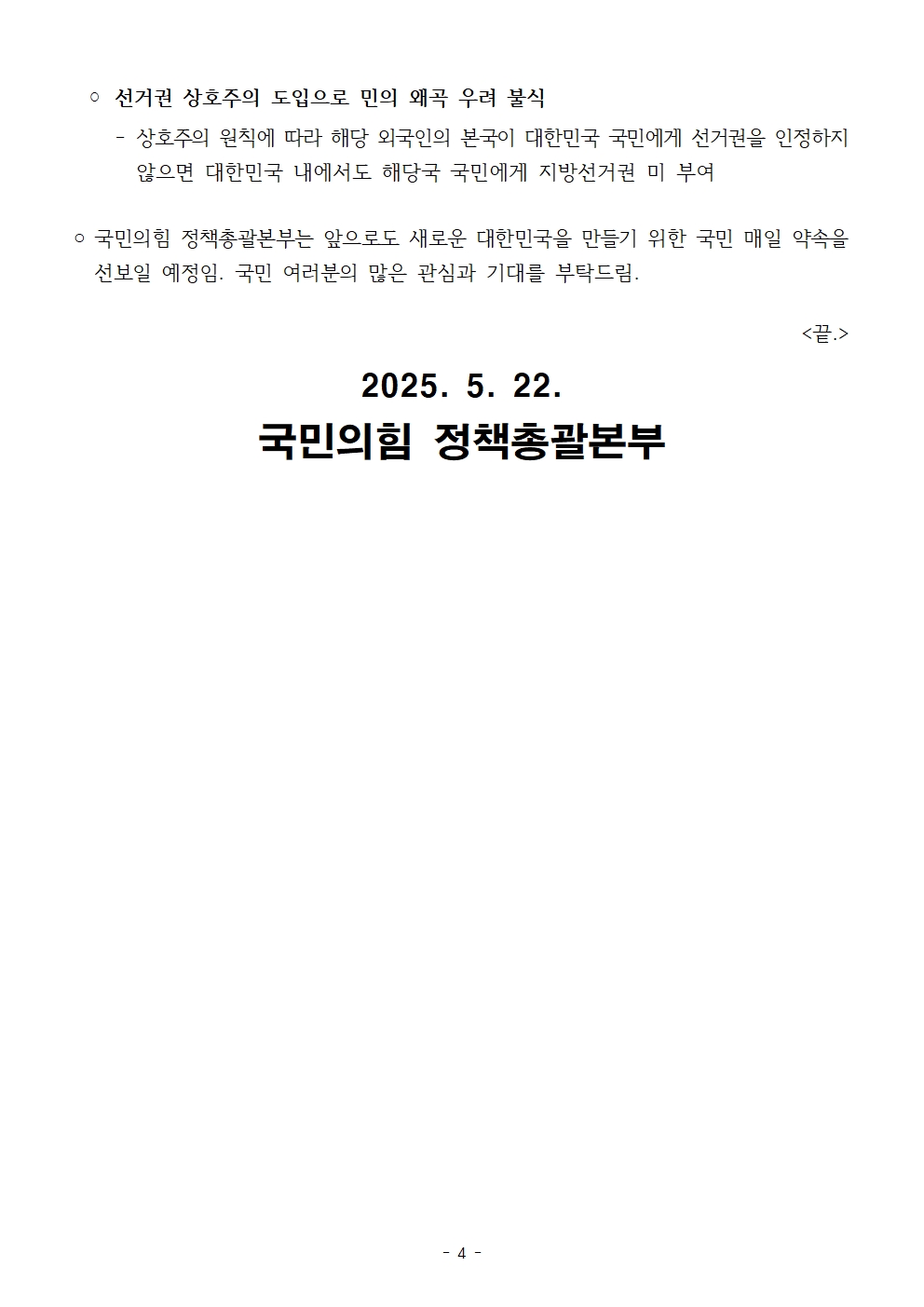국민의힘 정책위 공식 논평 및 보도자료입니다.