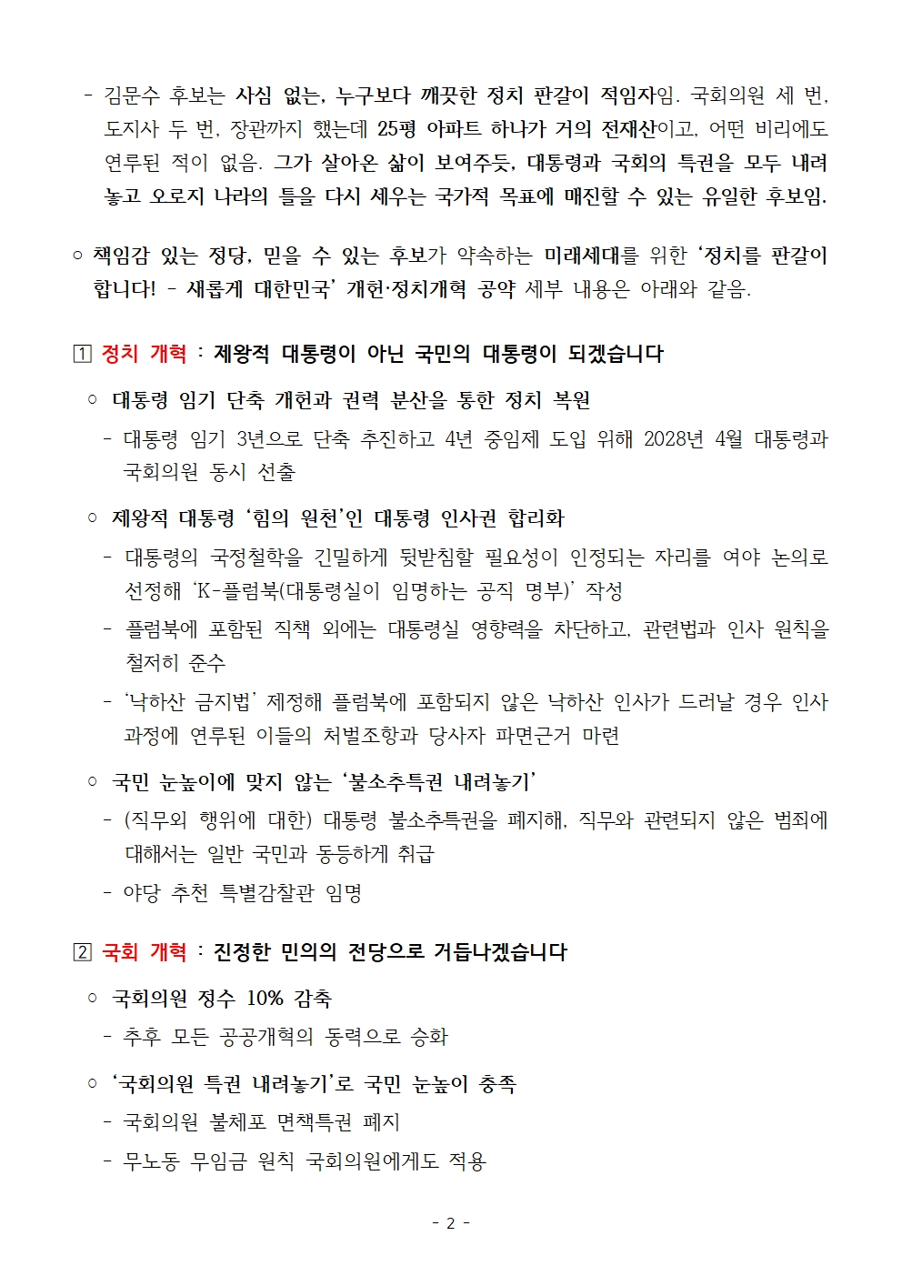 [보도자료] 국민의힘 '새롭게 대한민국 국민 매일 약속' 10. '정치 판갈이'로 '대한민국의 새판'을 짭니다! 개헌·정치개혁 공약 발표