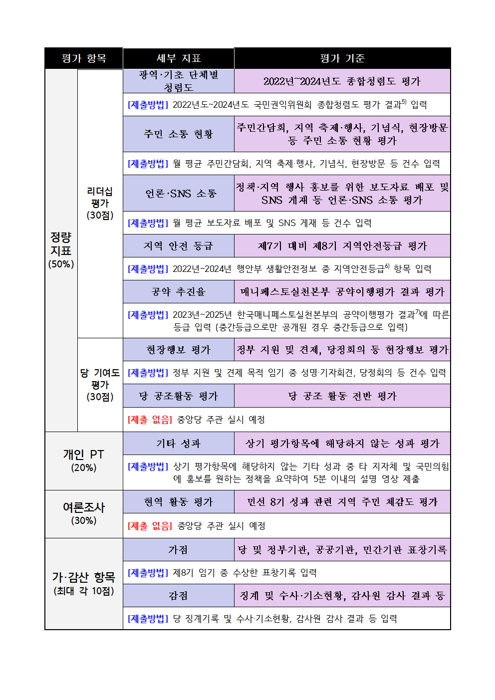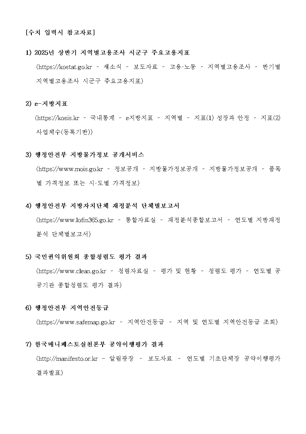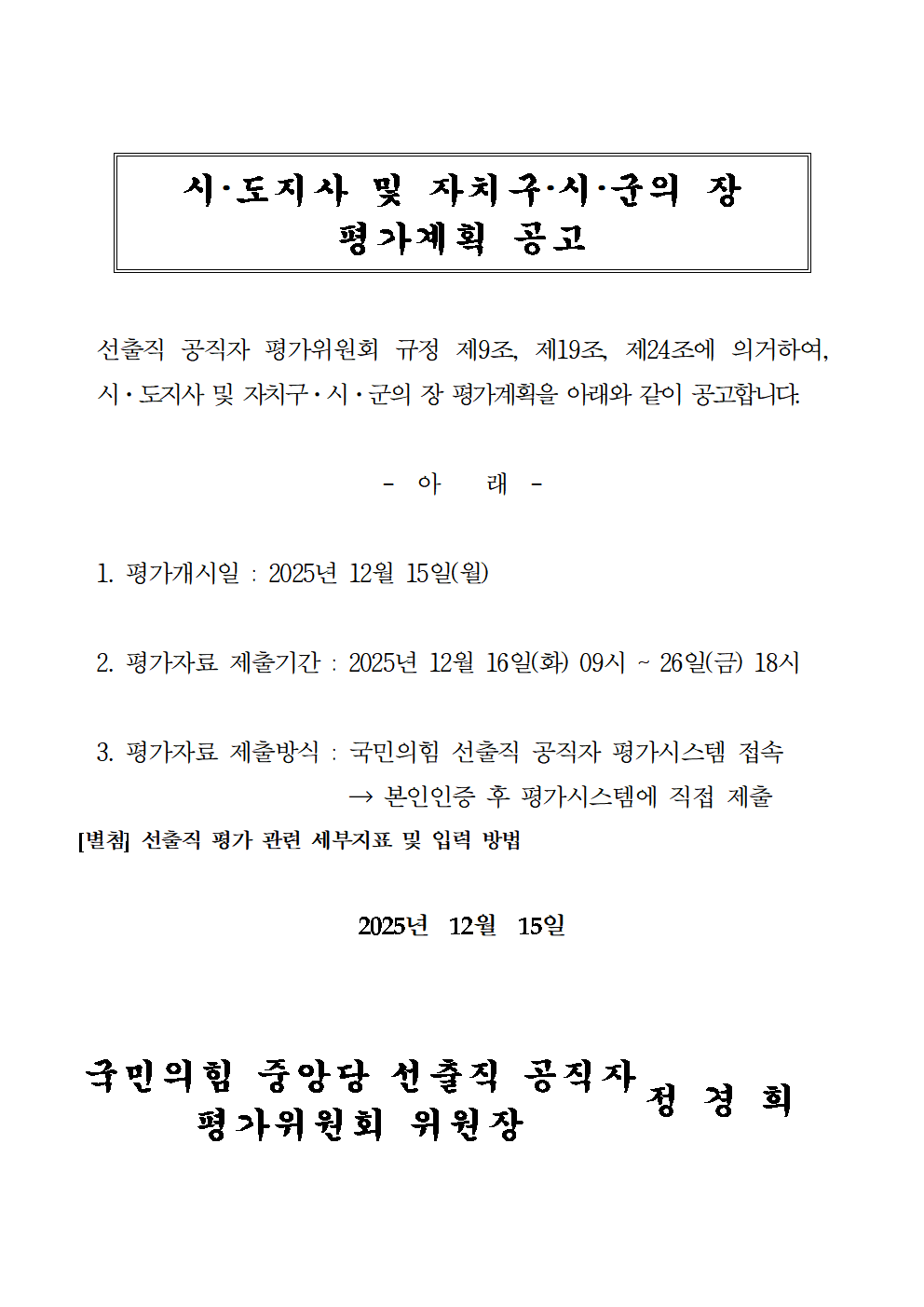 시·도지사 및 자치구·시·군의 장 평가계획 공고