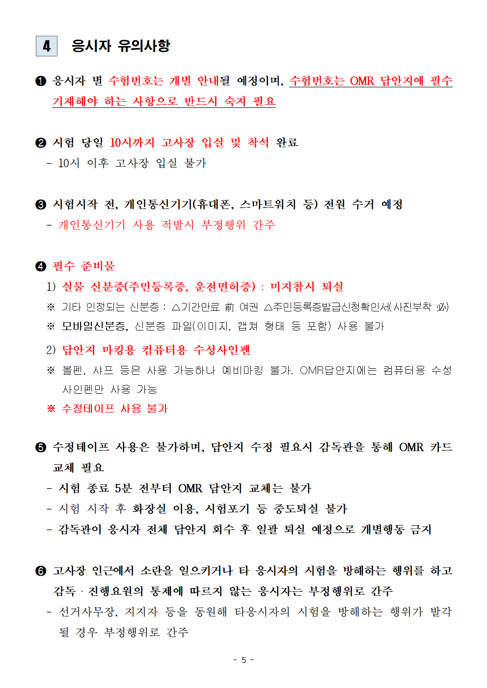 ※ 고사장 상세 약도 등은 별첨자료를 참고해주시기 바랍니다.