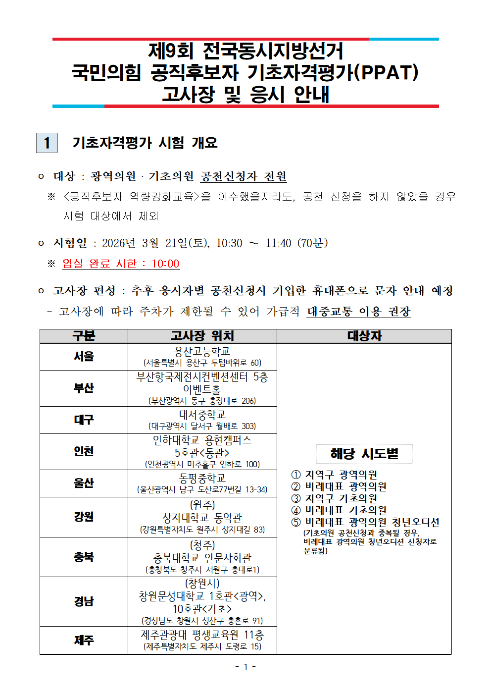 [안내문] 국민의힘 공직후보자 기초자격평가(PPAT) 고사장 및 시험 응시 안내(수정).pdf