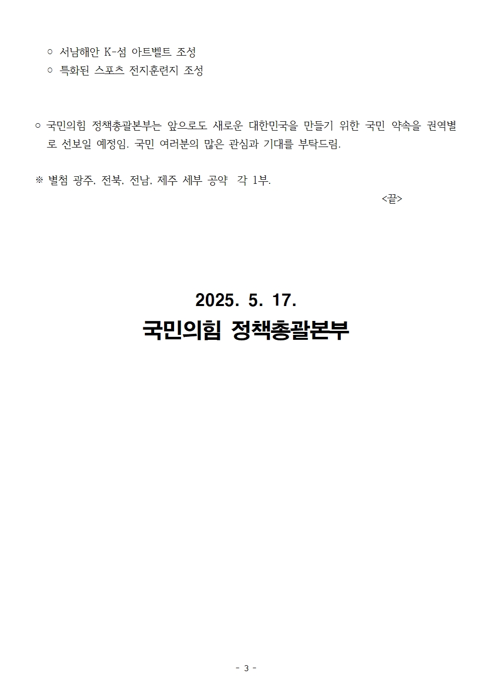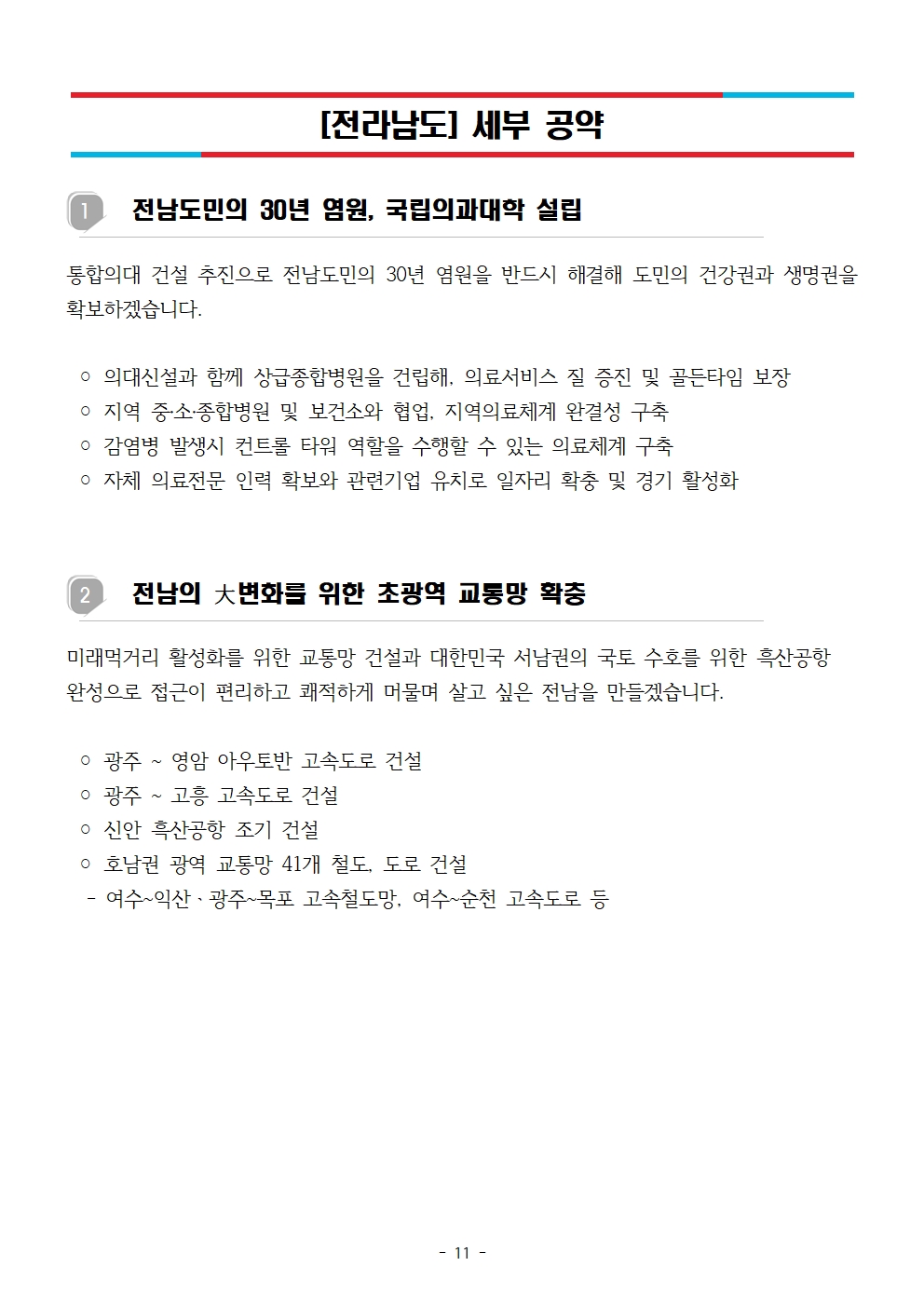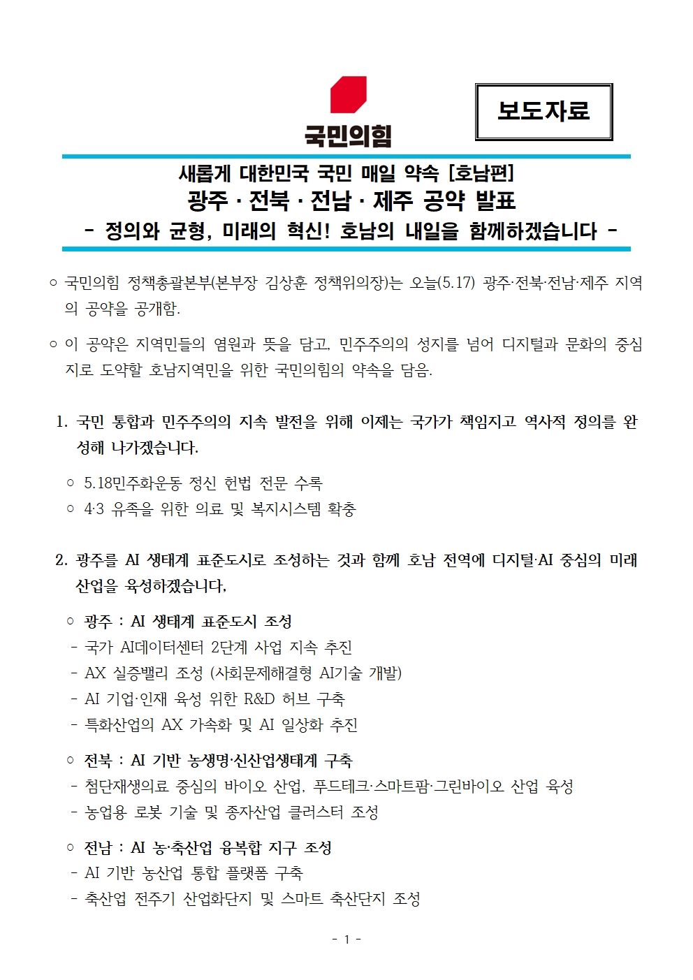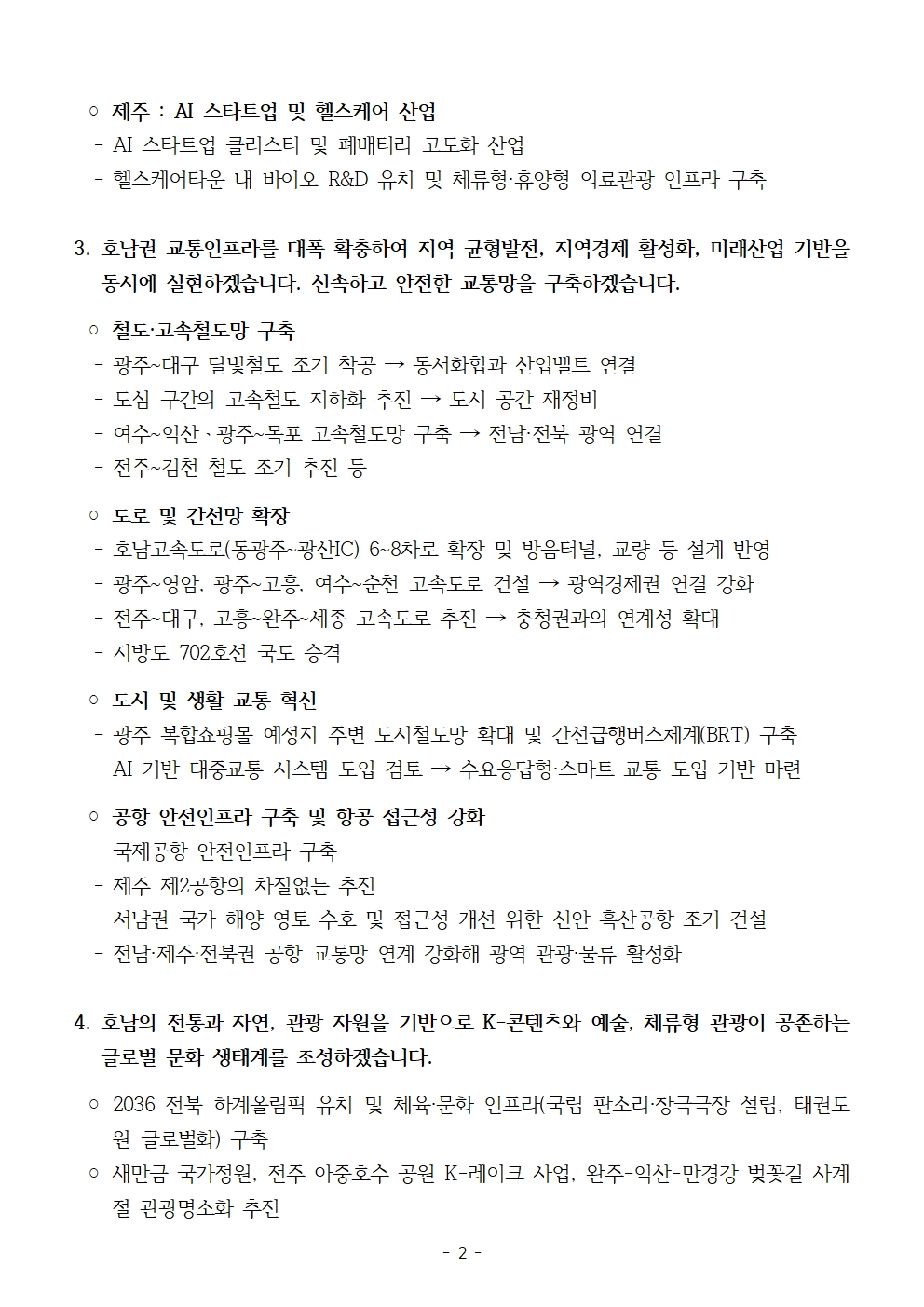 [보도자료] 광주·전북·전남·제주 공약 발표