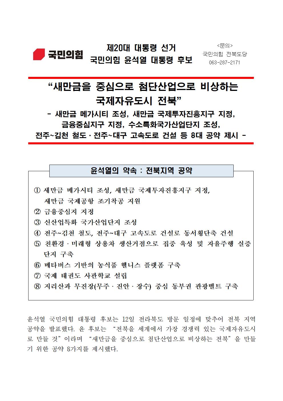 220212_보도자료_윤석열 국민의힘 대통령 후보_전북지역 공약.hwp