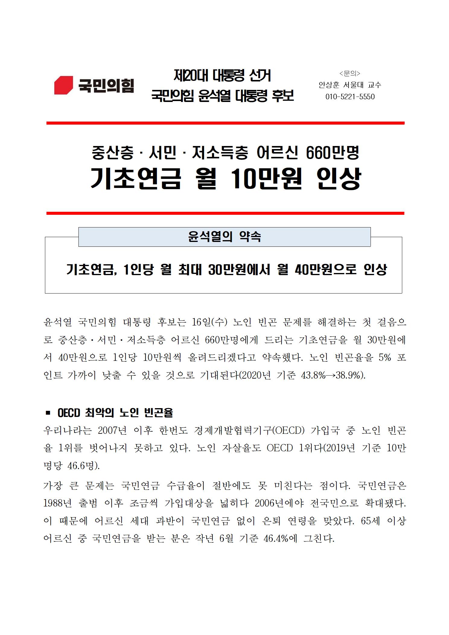 220216 [보도자료] 윤석열 국민의힘 대통령 후보_기초연금 인상_공약.hwp