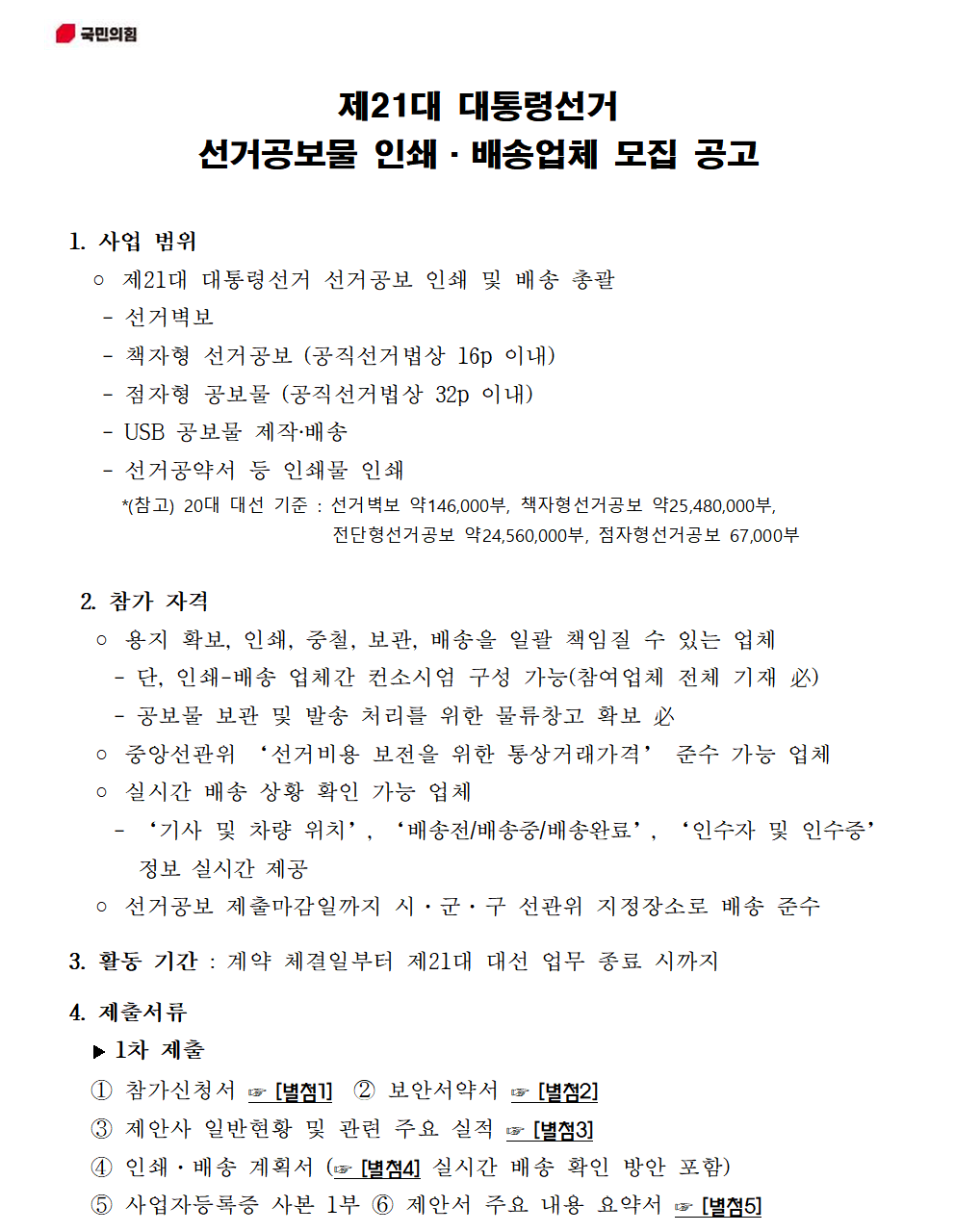 제21대 대통령선거 선거공보물 인쇄·배송업체 모집 공고