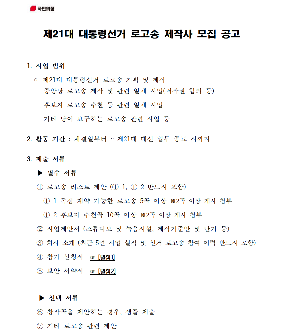 제21대 대통령선거 로고송 제작사 모집 공고