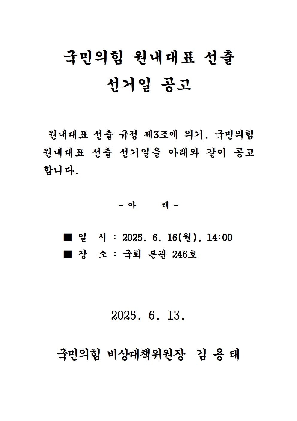2025 원내대표 선출 선거일 공고 안내