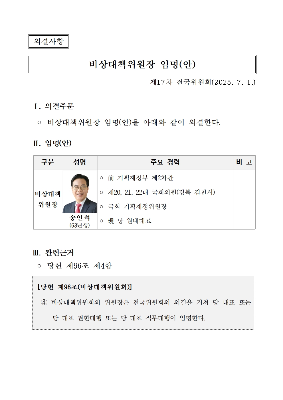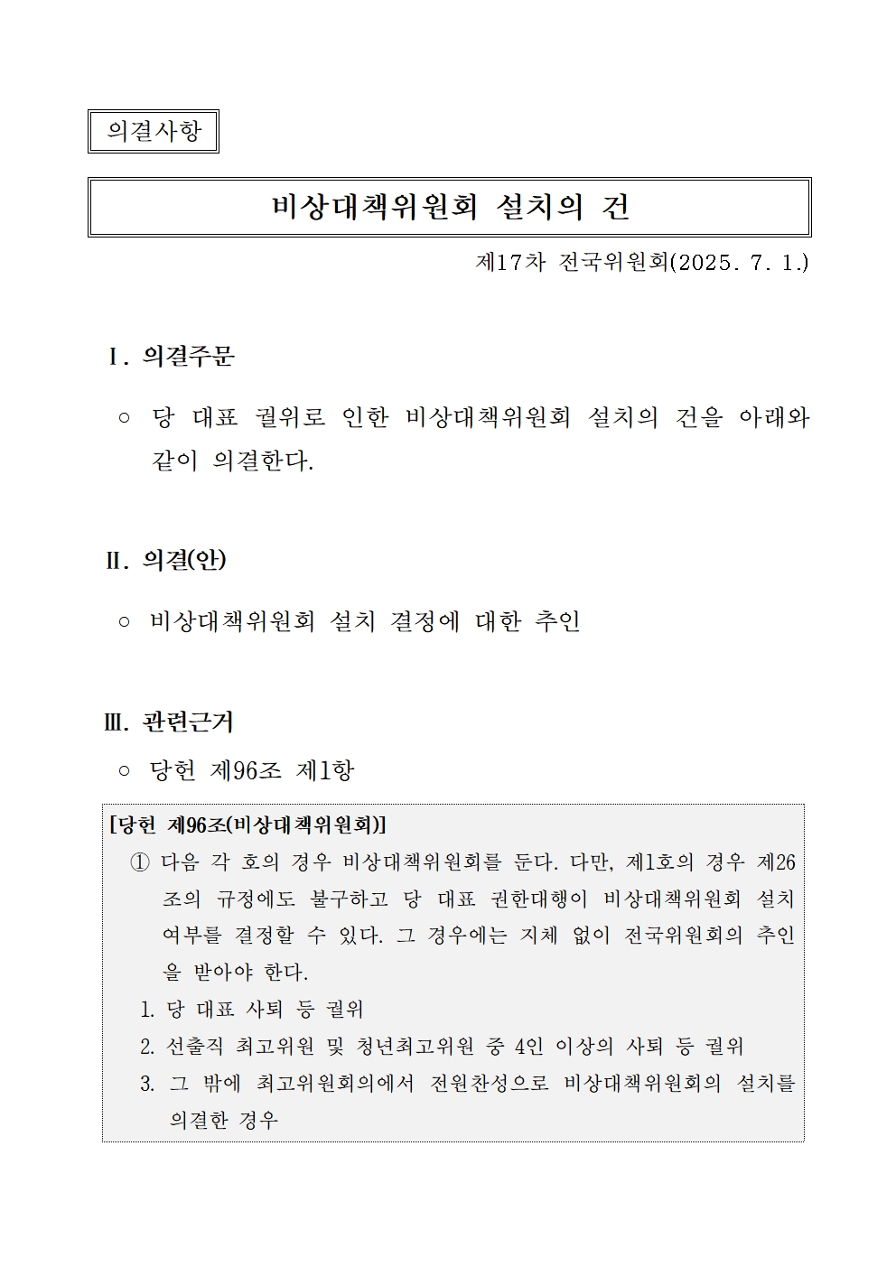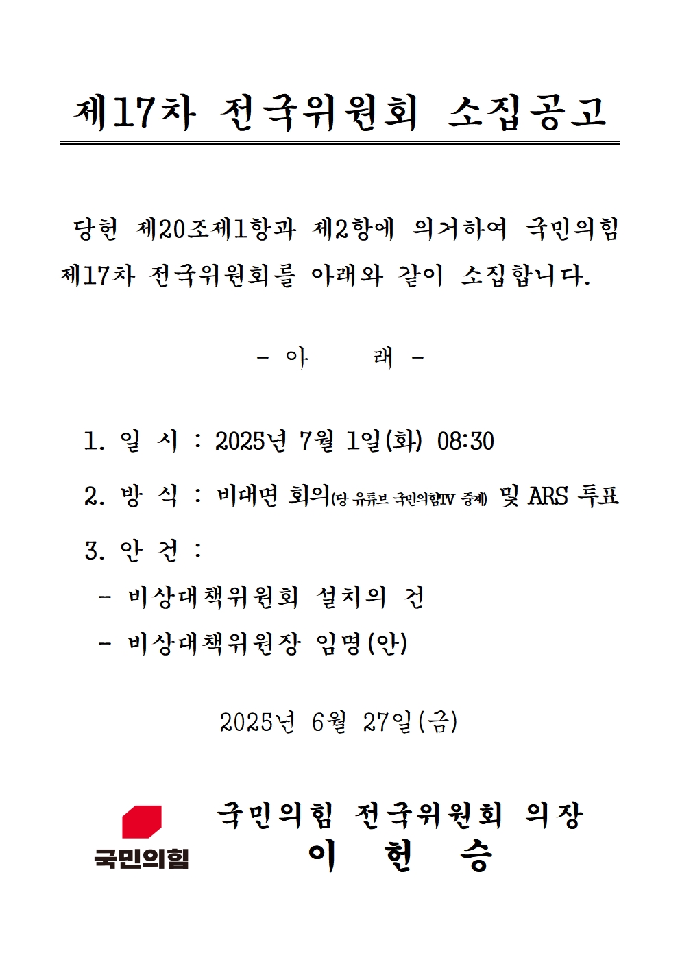 제17차 전국위원회 소집공고